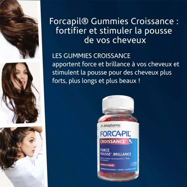 Forcapil, expert de la force et de la santé du cheveu depuis plus de 30 ans, a développé les gummies croissance spécialement conçues pour aider à :
