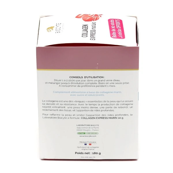 Pour raffermir la peau et limiter l’apparition de rides profondes, le laboratoire Biocyte a formulé Collagen Express Marin 10 g.