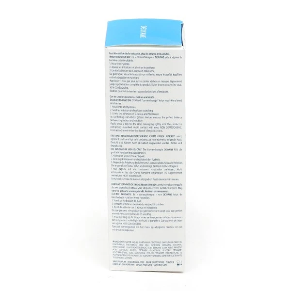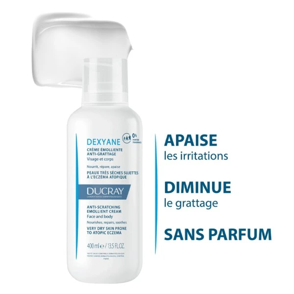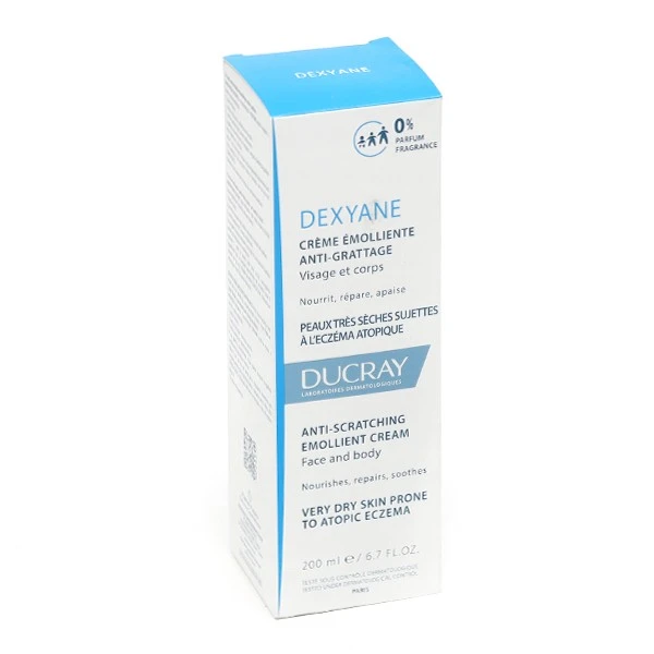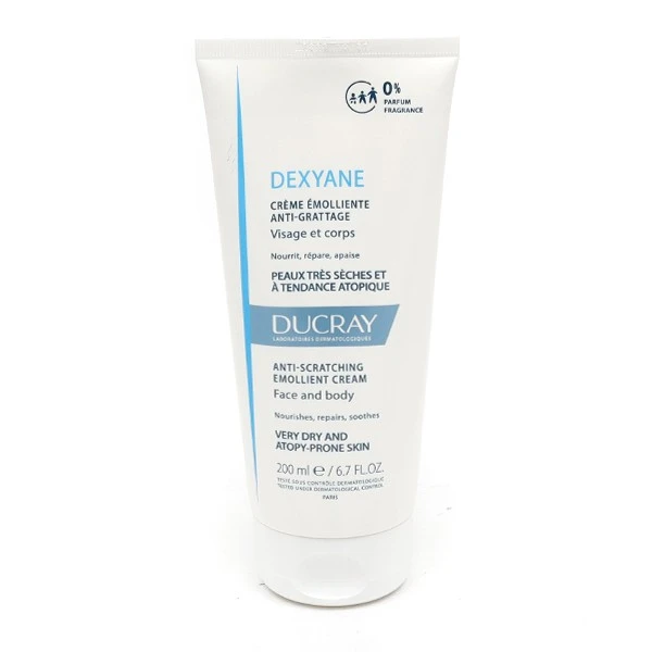 - La formule de la crème émolliente anti-grattage Dexyane Ducray n’est pas comédogène, ne contient pas de parabènes ni de parfum.