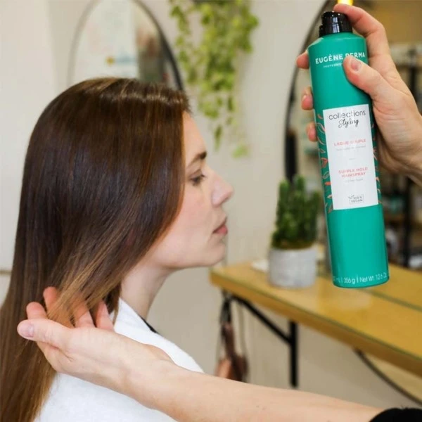 Avec la Laque Souple à la Caméline d’Eugène Perma votre chevelure sera sublimée et domptée pour une tenue longue durée contre vents et marées ! Si vous utilisez un lisseur ou un boucleur, protégez vos cheveux avec le spray thermoprotecteur à l’extrait de Nénuphar.