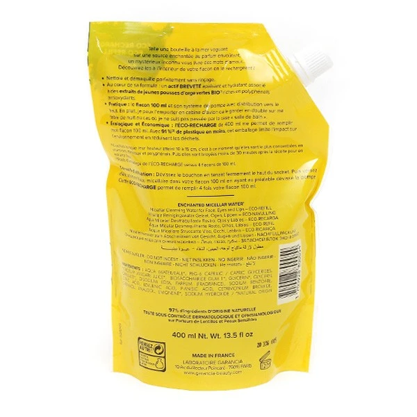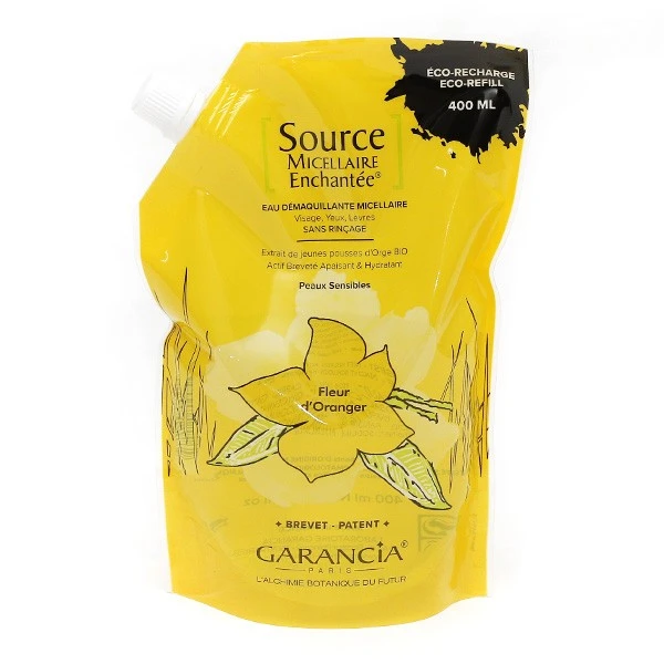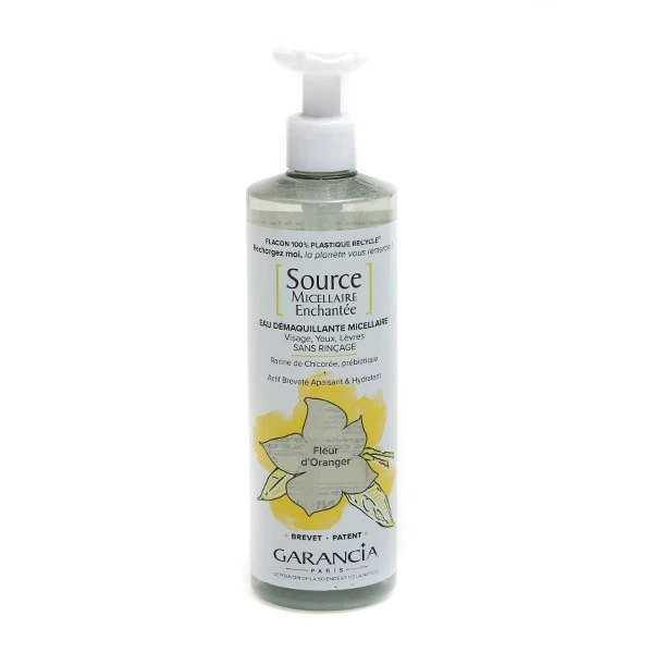 Avec la source micellaire enchantée de Garancia, la peau est parfaitement démaquillée et apaisée. Les sensations d’irritations, de picotements et de tiraillements disparaissent. Son délicat parfum de fleur d’oranger invite à la détente, en particulier après une longue journée. Ce produit est disponible en flacon-pompe de 400 ml ainsi qu’en recharge de 400 ml, permettant une réduction de son impact environnemental.