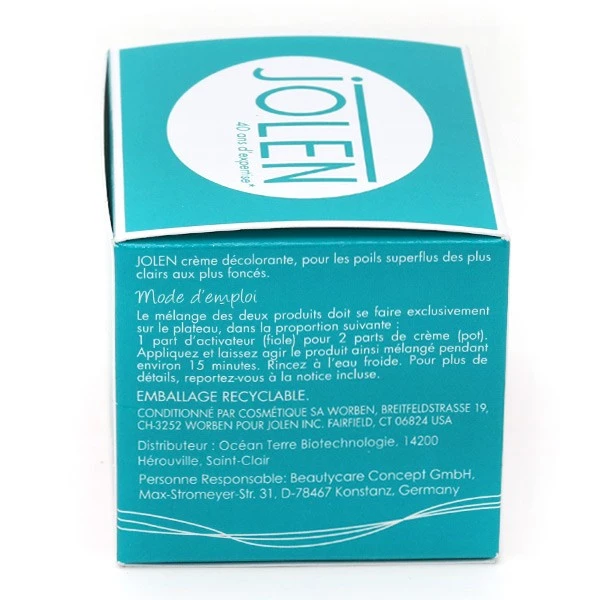 Cette crème décolorante Jolen est élaborée à base d’eau oxygénée et de bicarbonate d’ammonium qui sont parfaits pour traiter un duvet trop foncé. Cette crème va agir sur la couleur du poil en l’éclaircissant sans agresser la peau grâce au peroxyde d’hydrogène. Elle va décolorer les duvets du visage, des bras, du corps et des sourcils. Cette crème décolorante offre un résultat naturel tout en assurant une efficacité optimale.