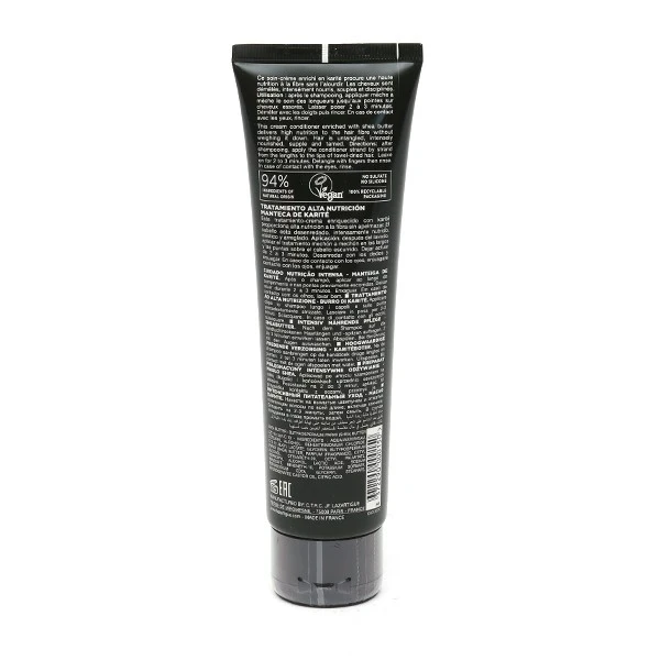 Formulé à partir de 94% d’ingrédients d’origine naturelle, il est notamment enrichi en beurre de karité, reconnu pour ses diverses propriétés. Ce dernier permet de nourrir en profondeur la fibre capillaire, et ainsi, convient particulièrement aux cheveux secs. Il est également doté d’autres bienfaits, en offrant plus de brillance aux cheveux ternes, ou encore en permettant d’entretenir une couleur.