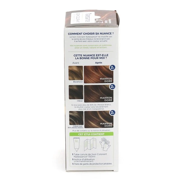 Pour une teinte plus Claire, optez pour le Soin Colorant Blond Vénitien 7.3 de Natessance !