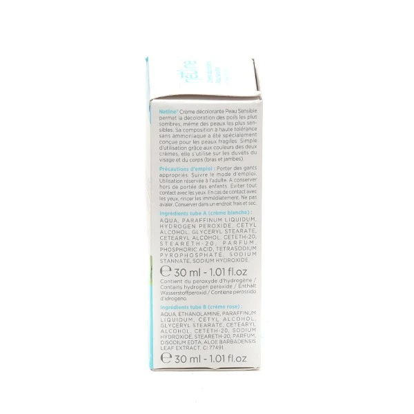 La Crème décolorante Peau sensible Netline garantit une décoloration complète de tous les types de poils du duvet, des plus claires aux plus foncés tout en évitant toute réaction cutanée.