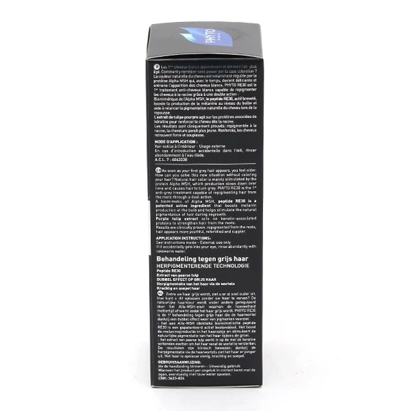 Le traitement anti-cheveux blancs RE30 de Phyto va agir sur ces deux facteurs pour contrer le blanchissement des cheveux. Il doit son nom, RE30, à un peptide qui va imiter l’action d’une hormone gérant la production de mélanine par les mélanocytes. Ainsi, il va inverser le processus de blanchissement en faisant repartir le processus de pigmentation. Il va également protéger les cheveux de l’action du peroxyde d’hydrogène.