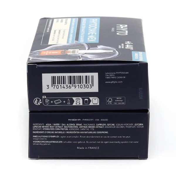 En effet, pour combattre efficacement la chute de cheveux et redonner de la densité à votre chevelure, Phyto a créé Phytocyane Men. Ce traitement anti-chute est formulé à base de 95 % d’ingrédients d’origine naturelle. La niacinamide (vitamine B3) possède des propriétés antioxydantes qui vont protéger les cheveux du stress oxydatif, responsable d’un vieillissement précoce des cheveux favorisant leur chute. La niacimamide va également stimuler la synthèse de la kératine et rendre vos cheveux plus souples et plus résistants. Phytocyane pour Homme renferme également de la glycérine, bien connue pour ses puissantes propriétés hydratantes. Elle va permettre de combattre les cheveux secs et cassants, et d’apaiser les éventuelles démangeaisons du cuir chevelu. Un acide biovectorisé, également présent dans la formule, va agir directement à la racine de la chute des cheveux en ciblant l’enzyme 5-alpha réductase, responsable de la miniaturisation du follicule pileux et de l’affinement des cheveux. L’extrait de Maca bio breveté va renforcer l’encrage du cheveu. Votre chevelure est plus dense et la fibre capillaire, plus forte. Enfin, le shiitaké (lentin du chêne), particulièrement riche en nutriments, va assurer une action antioxydante et revascularisante qui va redonner vie à vos cheveux, favoriser leur croissance et retarder la sénescence capillaire.
