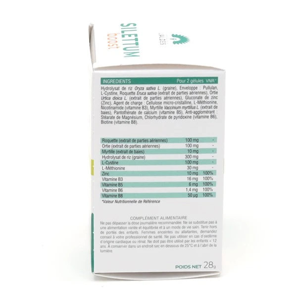 Poids net : 28g (60 gélules) ; 84 g (180 gélules)