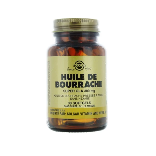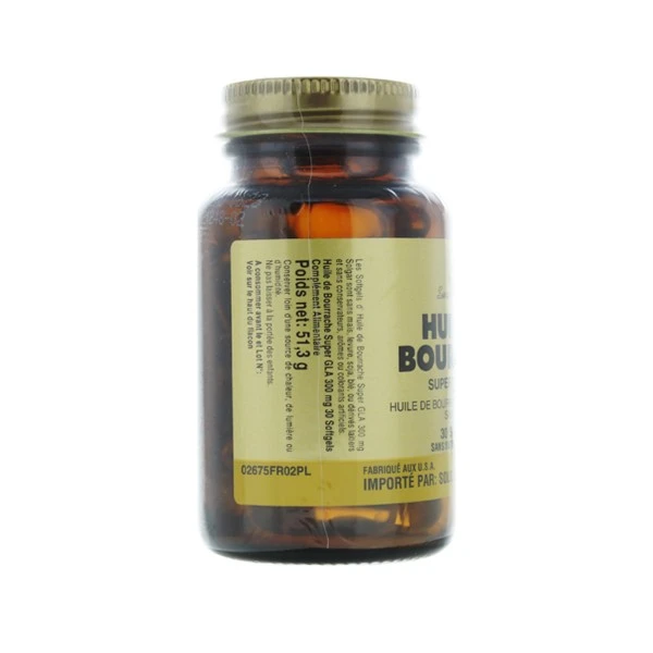 L’huile de bourrache Super GLA 300 mg Solgar est obtenue par des techniques de pression à froid excluant l’utilisation de solvants (hexane).