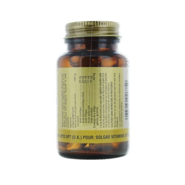Solgar Huile de bourrache est un complément alimentaire à base de plante pressée à froid sans hexane.