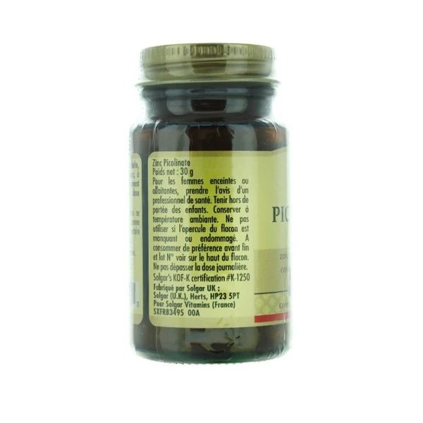 Solgar Zinc picolinate 22 mg est un complément alimentaire formulé au zinc hautement assimilable.
