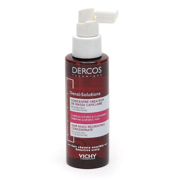La lotion Vichy Dercos Densi-solutions est formulée avec du Resveratrol, considéré comme « molécule de longévité ». Le Resveratrol possède également de puissantes propriétés antioxydantes utilisées pour le soin de la peau. Vichy Dercos Densi-solutions contient également de la Stemoxydine une molécule qui redensifie la chevelure. Elle offre une texture fluide, pour une application facile sur les racines, et une absorption rapide sans laisser de film gras ou de résidus collants.