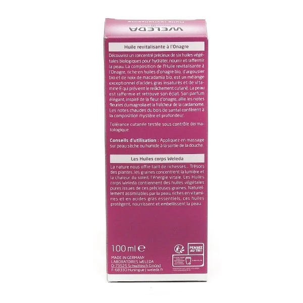 Les laboratoires Weleda puisent dans la nature pour y trouver les bienfaits des plantes. Respectueux de l’environnement, les produits Weleda répondent aux exigences du label Natrue. La bouteille de cette huile revitalisante a été faite à partir de 85 % verre recyclé et l’étui carton avec plus de 85 % de fibres recyclées.